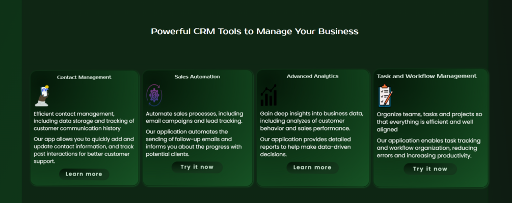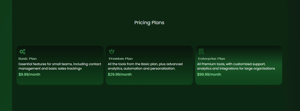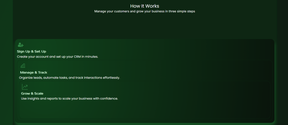 A clean and professional CRM SaaS landing page. Need custom design or a full CRM solution? Contact us!