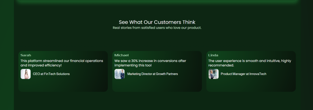 ✅ Key sections: Features, How It Works, Pricing, Testimonials, FAQs