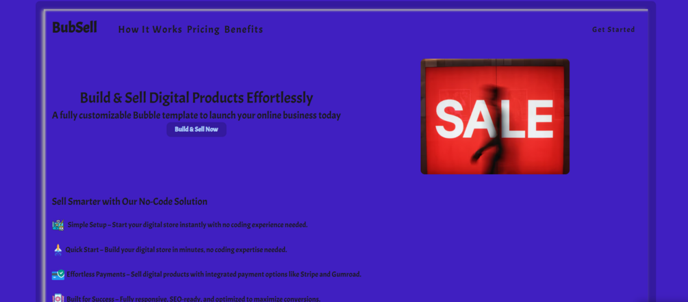 This template is perfect for anyone looking to quickly and efficiently launch an e-commerce platform. BubbleSell allows you to rapidly set up your sales system and further develop it with additional features as needed for your project.